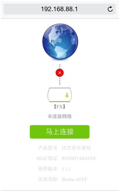 3、打开pc或者手机上的浏览器,在地址栏输入 192.168.88.1 打开以下页面: