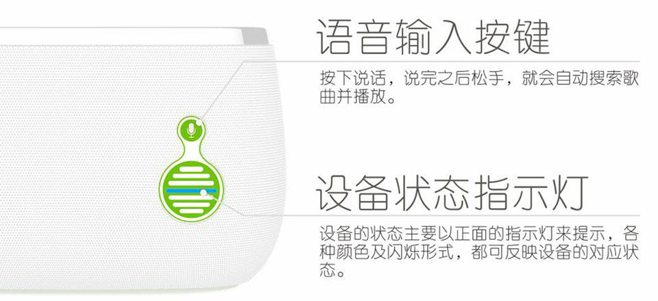 设备正面包含一个指示灯、一个语音输入按键
